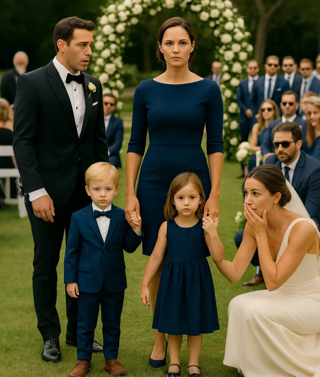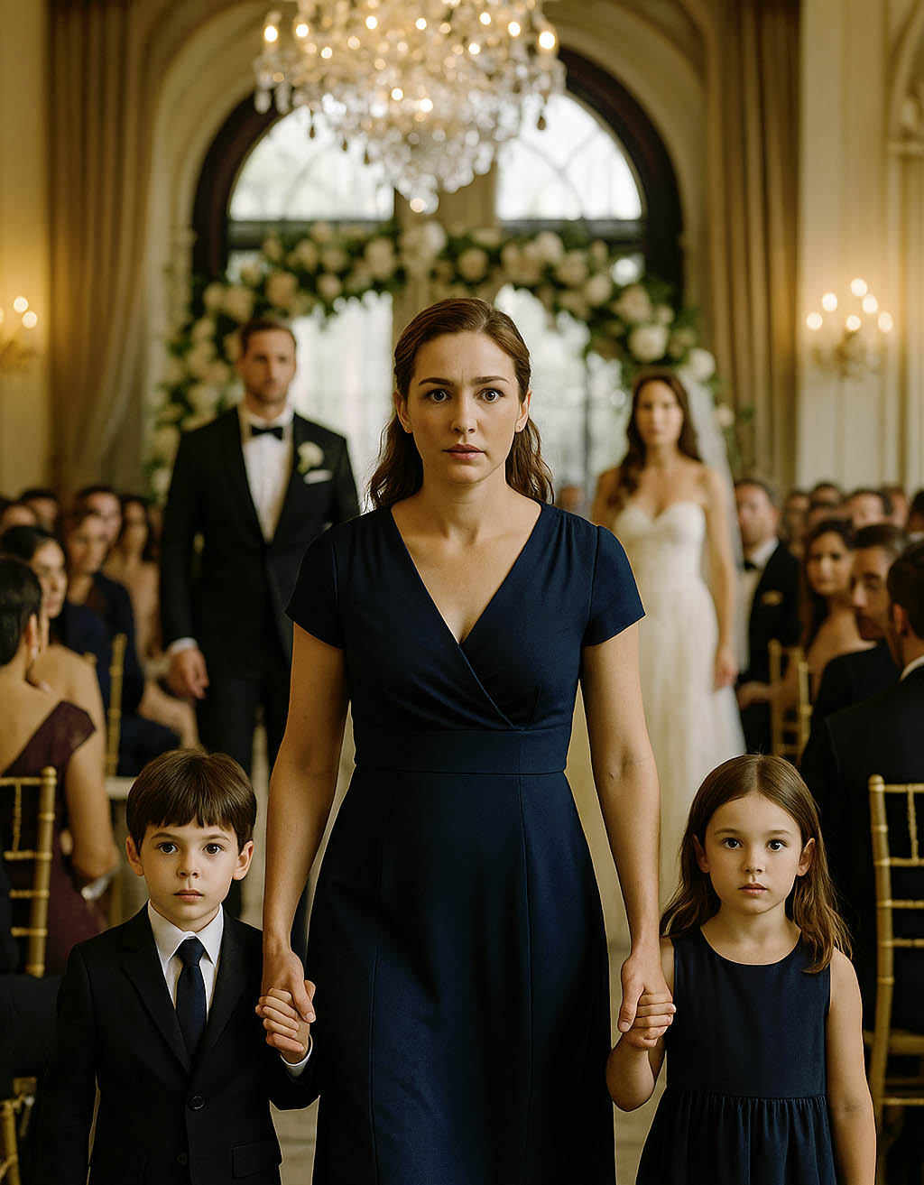 Soudain, il l’aperçut : Léa, vêtue d’une sobre robe bleu marine d’une élégance discrète, coiffure sage… et deux enfants près d’elle. Un petit garçon et une fillette, manifestement jumeaux.