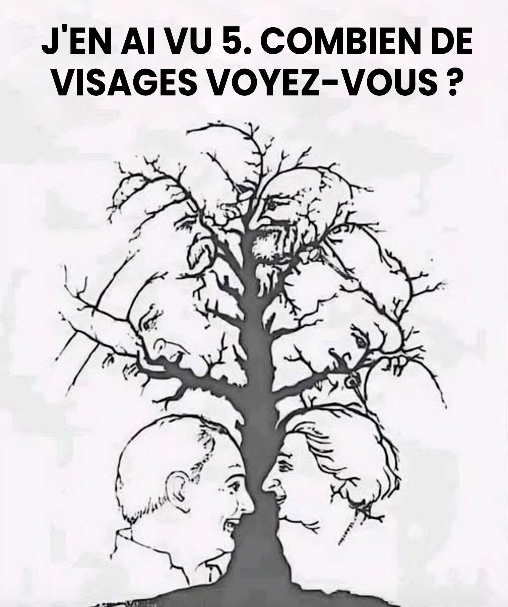 Nous sommes nombreuses à apprécier ces petites énigmes du quotidien qui stimulent notre regard. Pourtant, face à cette image représentant un arbre un peu particulier, même les plus observatrices hésitent un instant. Au premier coup d’œil, on distingue deux profils bien visibles au pied du tronc. Rien de complexe. Puis les choses se compliquent : d’autres visages, bien plus subtils, semblent se fondre dans les branches comme s’ils jouaient à cache-cache.