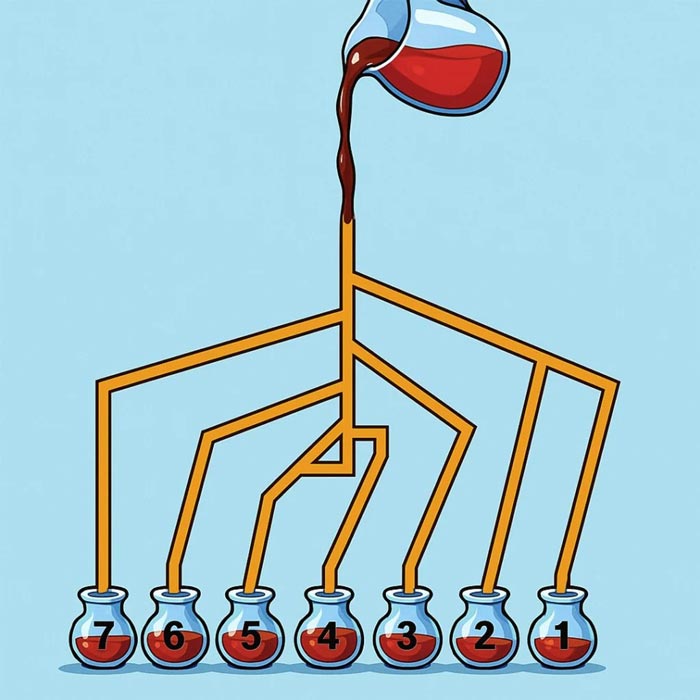 Énigme visuelle : quel récipient débordera en premier ? Tracez le parcours du liquide !