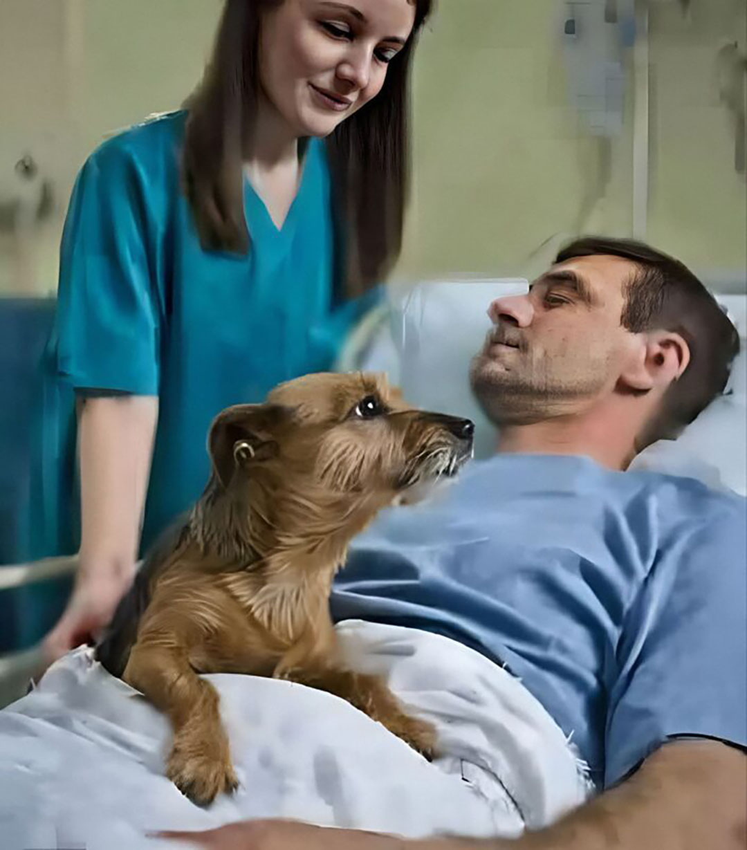 Dès que Milo pénétra dans la chambre stérile, l’ambiance parut changer. Le chien s’approcha du lit avec une délicatesse inhabituelle, puis, reconnaissant son maître, se mit à gémir et aboyer avec une intensité remarquable. Il sauta doucement sur le lit, frotta son museau contre la main immobile de Lucas et la toucha légèrement de sa patte.