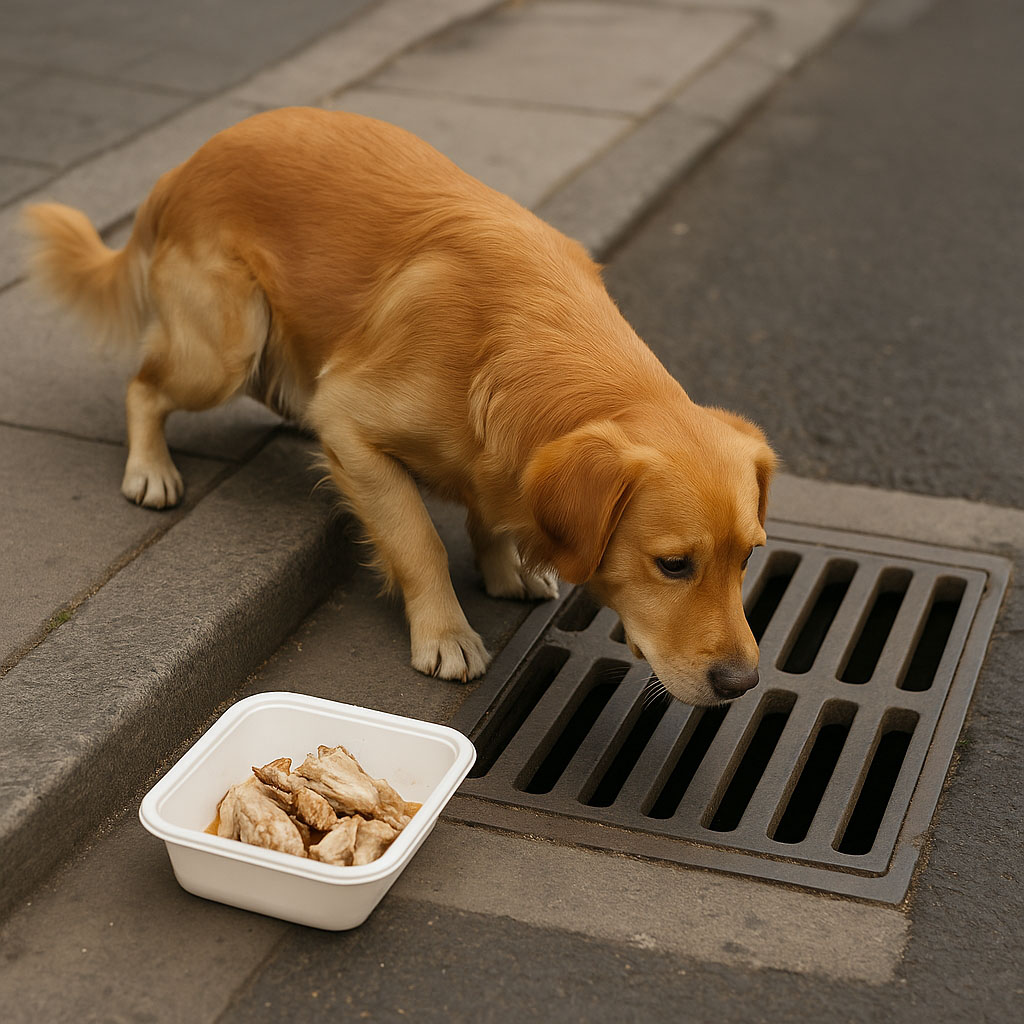 Piquée par la curiosité, Anaïs décida de mener sa propre enquête. Elle prépara un appât irrésistible – des morceaux de poulet grillé – et suivit Nino à distance respectueuse. Le chien emprunta des chemins détournés avant de s’arrêter devant une grille d’égout rouillée. Ce qu’elle vit alors la laissa sans voix : Nino déposait méticuleusement sa nourriture entre les barreaux, comme s’il faisait une offrande.