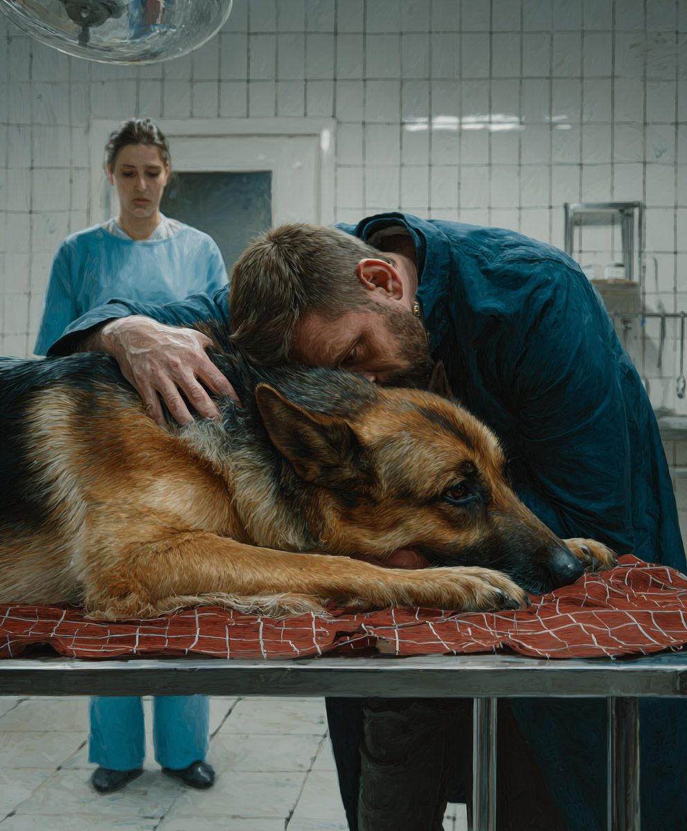Dans le calme solennel de la clinique, Julien tient serré contre lui son berger allemand affaibli. Alors que l'équipe s'apprête à administrer l'injection finale, la vétérinaire suspend soudainement l'intervention. Une révélation imprévue va complètement modifier l'issue prévue pour l'animal.