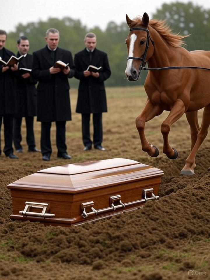 Un cheval fait irruption lors des funérailles et se dirige vers le cercueil : découvrez la raison poignante de cette apparition