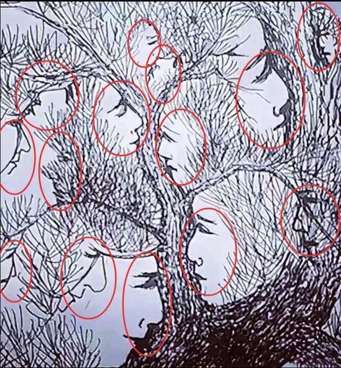 Défi visuel : combien de visages saurez-vous découvrir dans cet arbre énigmatique ?