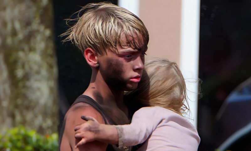 Je n’avais pas vraiment saisi la situation au début… jusqu’à ce moment précis où j’ai vu une silhouette sombre émerger des volutes de fumée. C’était mon fils, mon adolescent de treize ans, le visage couvert de suie, le regard encore brillant d’émotion, tenant serrée contre lui une petite fille terrifiée. À cet instant, le temps semblait s’être suspendu.
