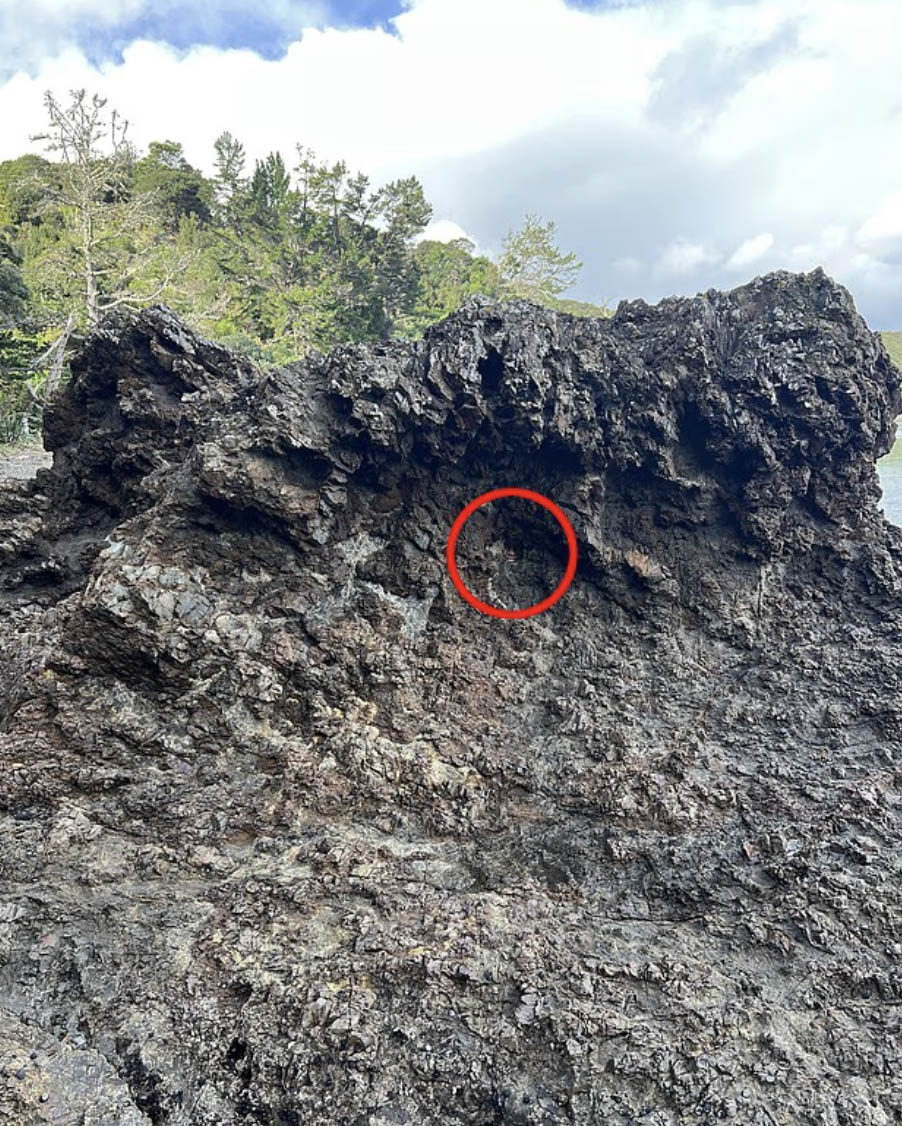 Cette photo, prise lors d’une promenade au bord de la mer, présente une formation rocheuse typique mais d’une complexité texturale qui trompe les regards les plus perçants. Selon la mère qui l’a prise :
