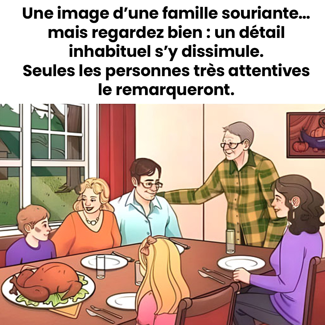 Cette image d'un dîner en famille semble parfaite, mais un détail insolite échappe à la logique. Saurez-vous identifier l'élément incongru en un temps record ?