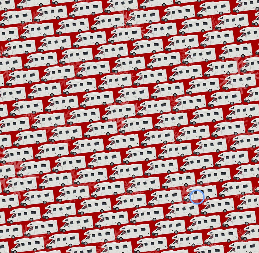 Une série de véhicules de loisirs parfaitement alignés cache une imperceptible différence. Lancez-vous dans ce jeu visuel et prouvez votre sens du détail en identifiant celui qui déroge à la règle.