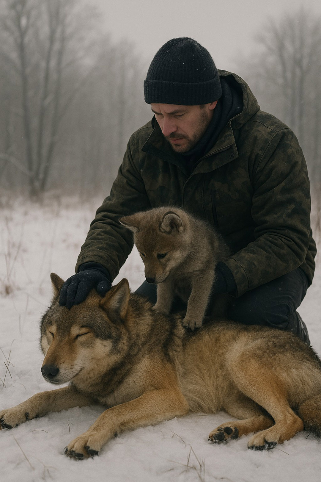 En progressant avec difficulté sur le chemin verglacé, une tache sombre contre la blancheur attira son regard. En s’approchant, il sentit son cœur se serrer : une louve gisait, visiblement blessée, tandis qu’un louveteau anxieux tournait autour d’elle. La réaction instinctive fut la crainte, face à un animal sauvage et imprévisible. Pourtant, une force intérieure plus puissante l’empêcha de passer son chemin et de feindre l’indifférence.