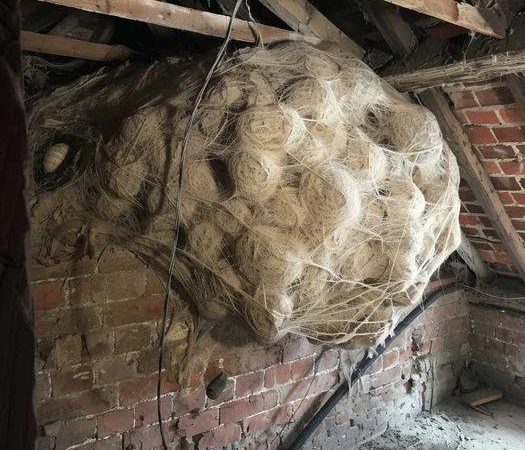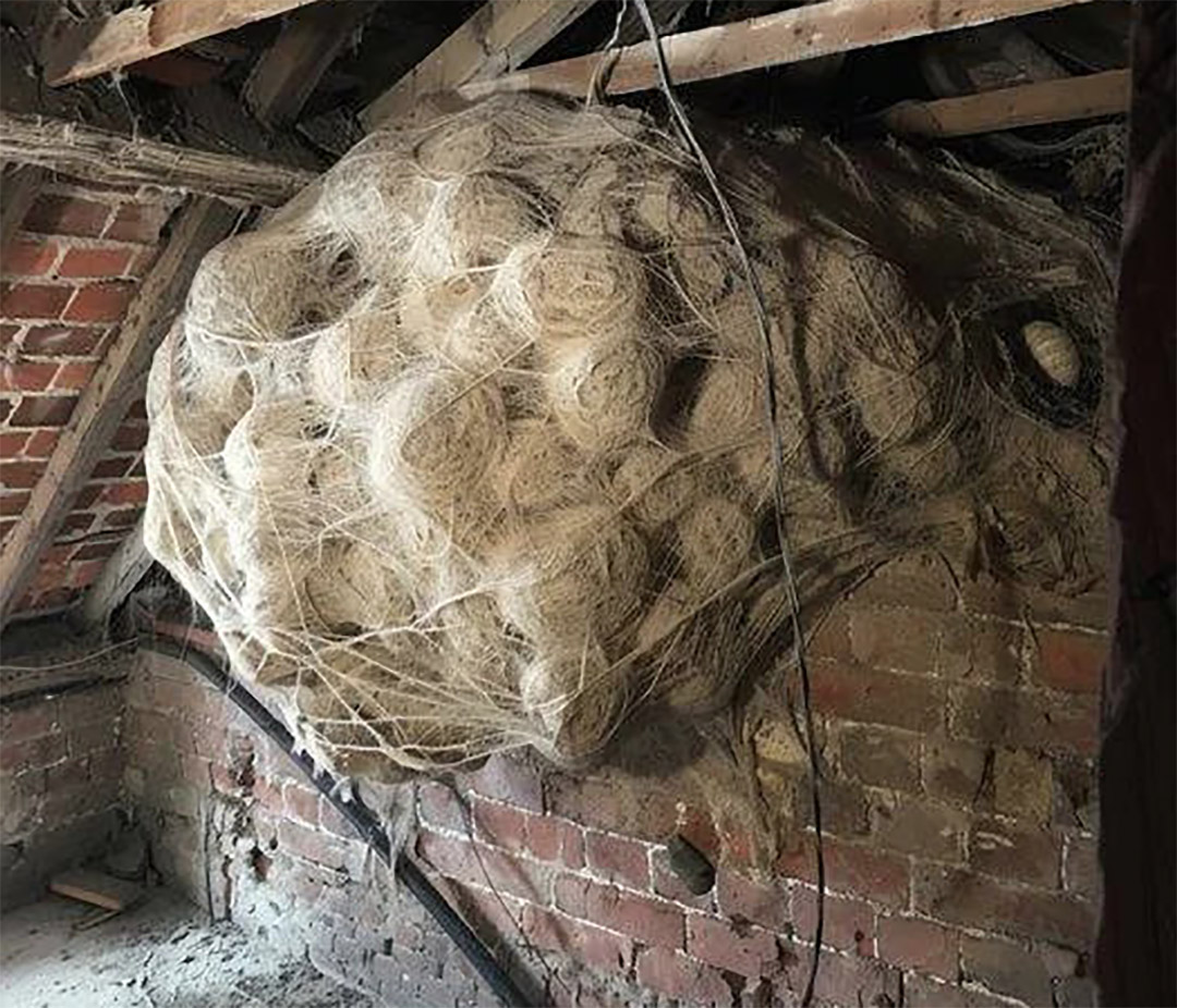 Le nid est immense, parcouru d’un frémissement continu, presque vivant. Julien le décrit comme « un moteur en panne qui ronronnerait sans arrêt ». Un vrombissement sourd, angoissant, qui s’intensifie au fil des jours. Très vite, il se rend compte que l’invasion ne s’arrête pas à l’extérieur : elle a gagné les moindres recoins des combles.
