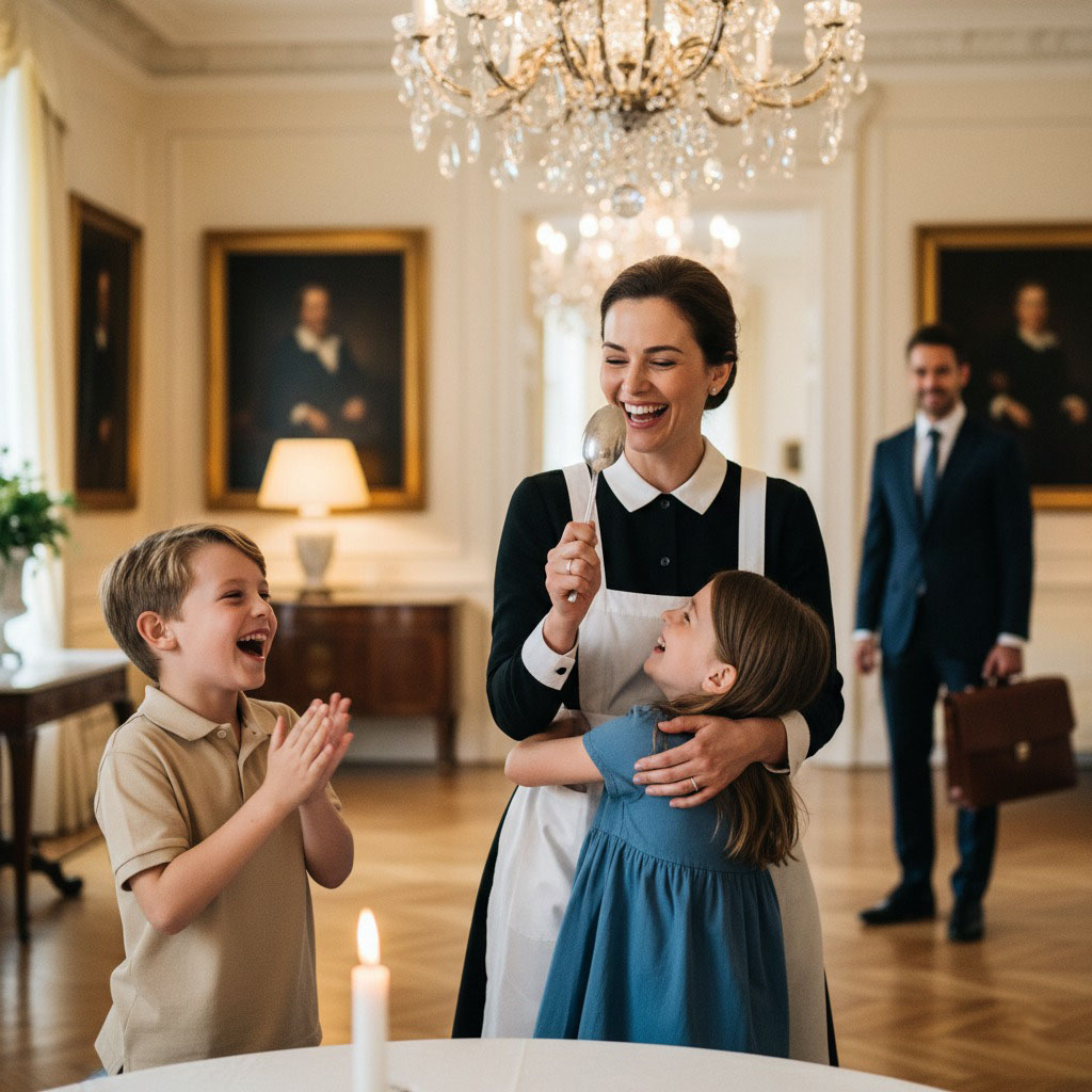 Sur la table trônait un délicieux gâteau au chocolat encore tiède, on distinguait des traces de crème sur les visages, des morceaux de fruits éparpillés… et surtout, ses deux enfants rayonnants de bonheur, partageant des éclats de rire avec Sofia, leur gouvernante.