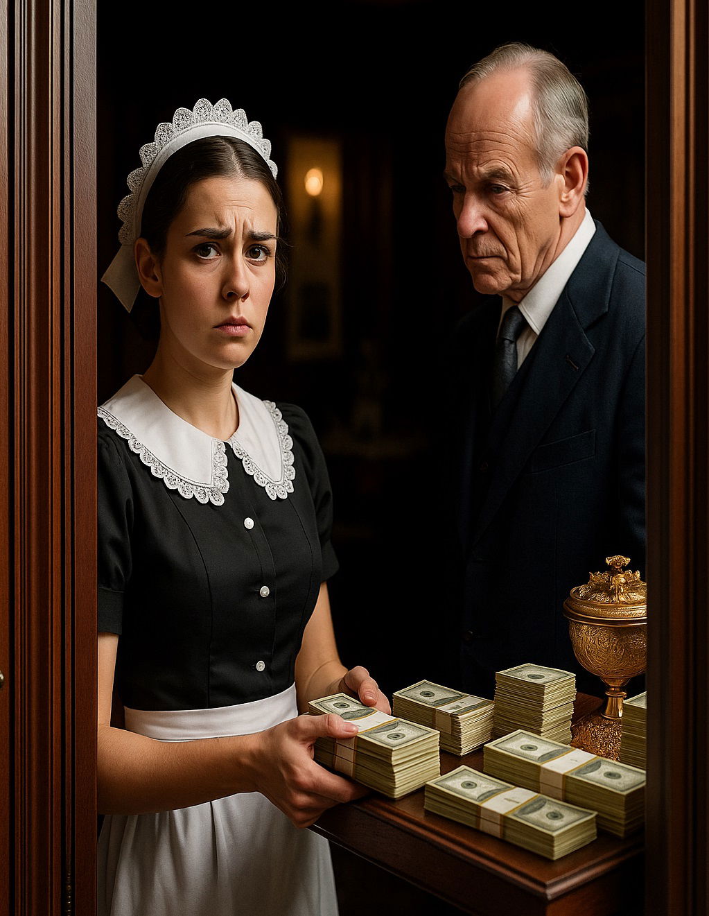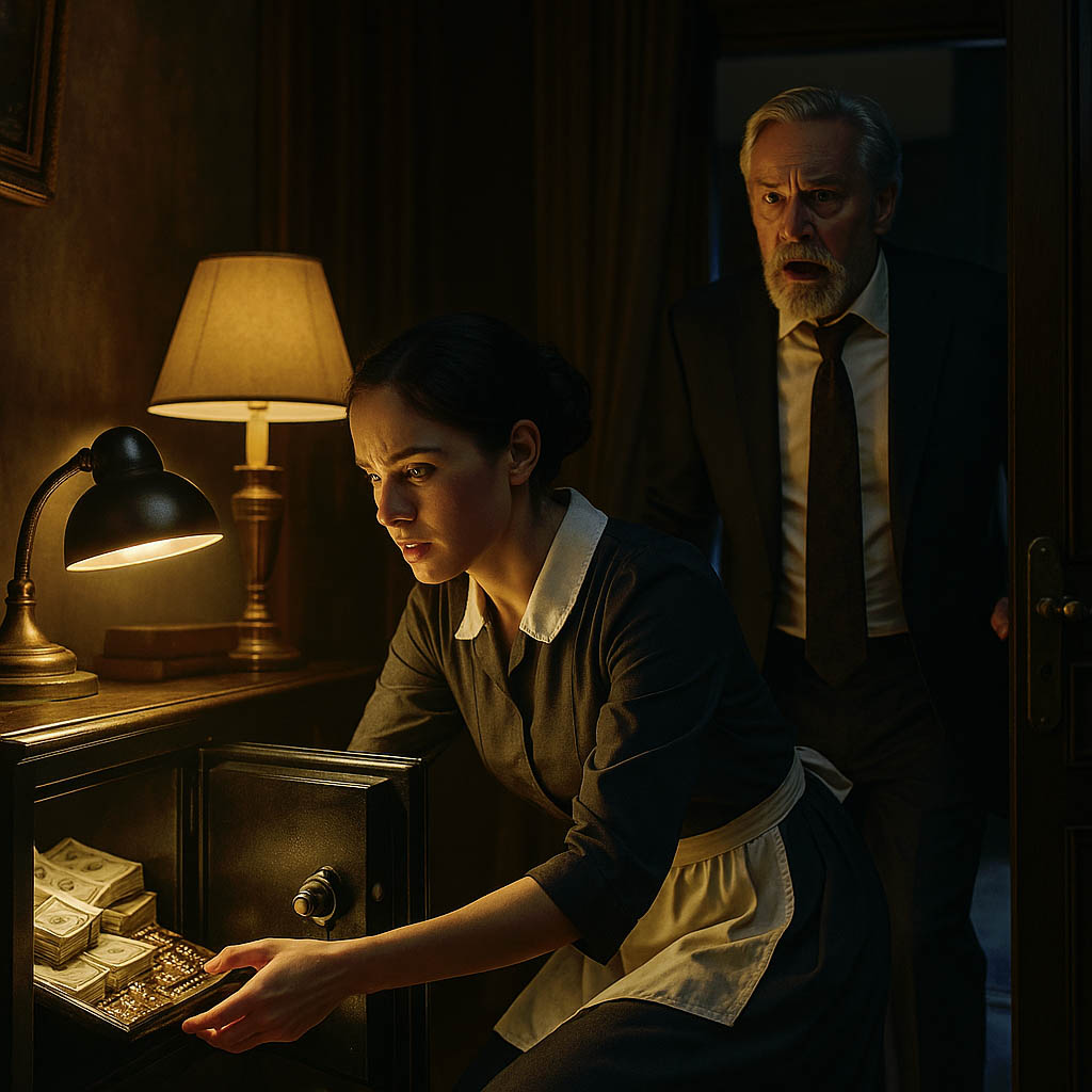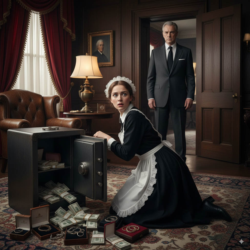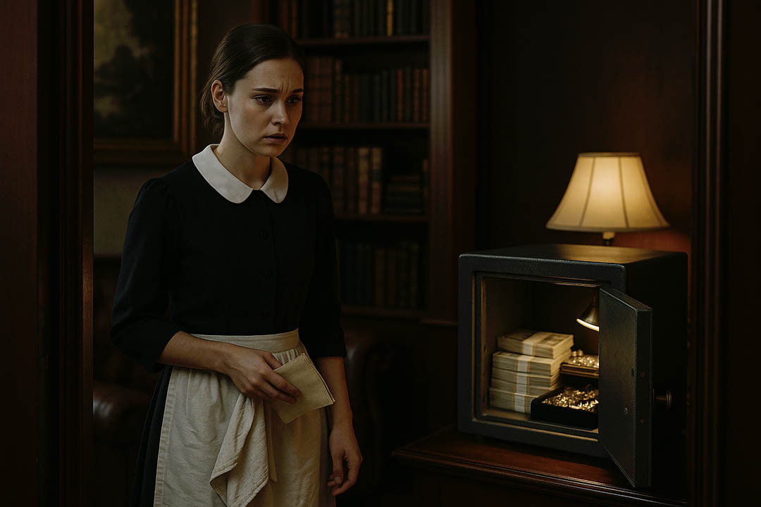 Un jour de pluie battante, l’homme d’affaires décida de tester ses soupçons. Dans son bureau, il laissa délibérément son coffre ouvert, exposant bijoux et liasses d’argent. Puis il se dissimula, attendant avec une tension palpable l’arrivée de sa femme de ménage.