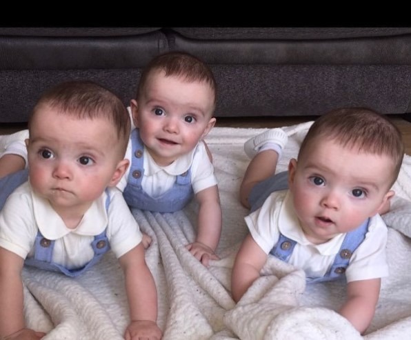 Les trois petits garçons — Rocco, Romain et Rohan — sont nés d’un ovule qui s’est divisé deux fois, une situation exceptionnelle qui se produit très rarement. À l’hôpital, les médecins pensaient d’abord qu’ils n’étaient pas identiques, mais les proches, eux, ne cessaient de souligner leur ressemblance incroyable. Il a fallu un test ADN pour trancher : oui, les trois frères sont génétiquement identiques.