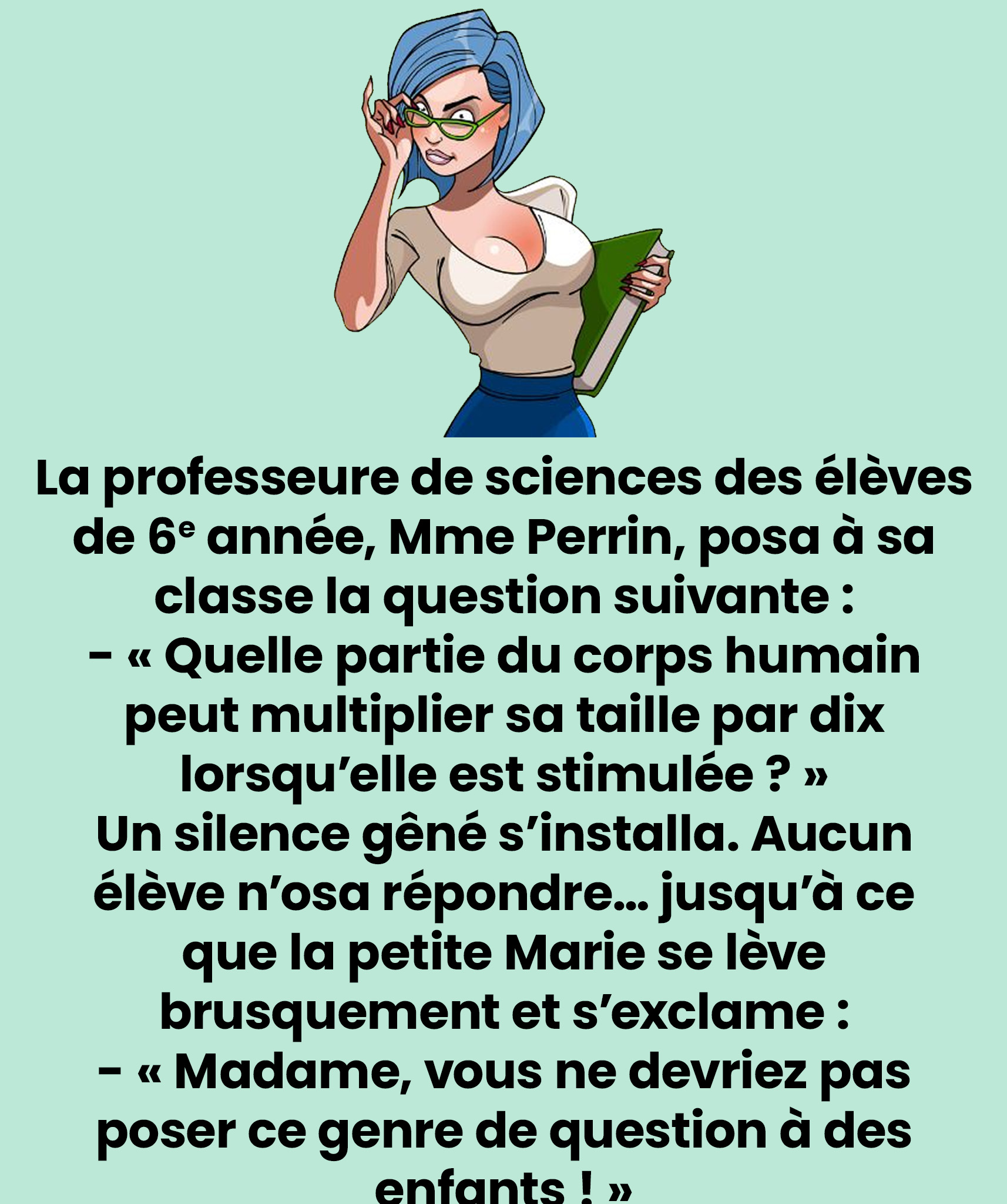 Au final, ce bref épisode scolaire a transmis bien plus qu’une simple notion de biologie : il a offert une leçon de sagesse, créé un moment de complicité joyeuse, et apporté une salutaire prise de recul pour chacun.