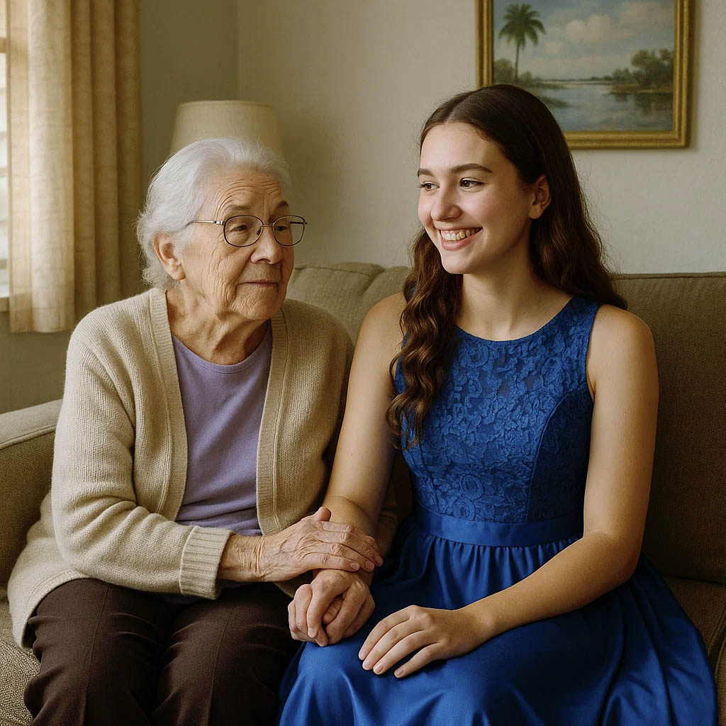 Le soir du bal, Camille découvre la robe précieuse. Submergée par l’émotion, elle comprend aussitôt la portée de ce cadeau. « Mamie… c’est vraiment sublime », murmure-t-elle, les yeux brillants de bonheur.