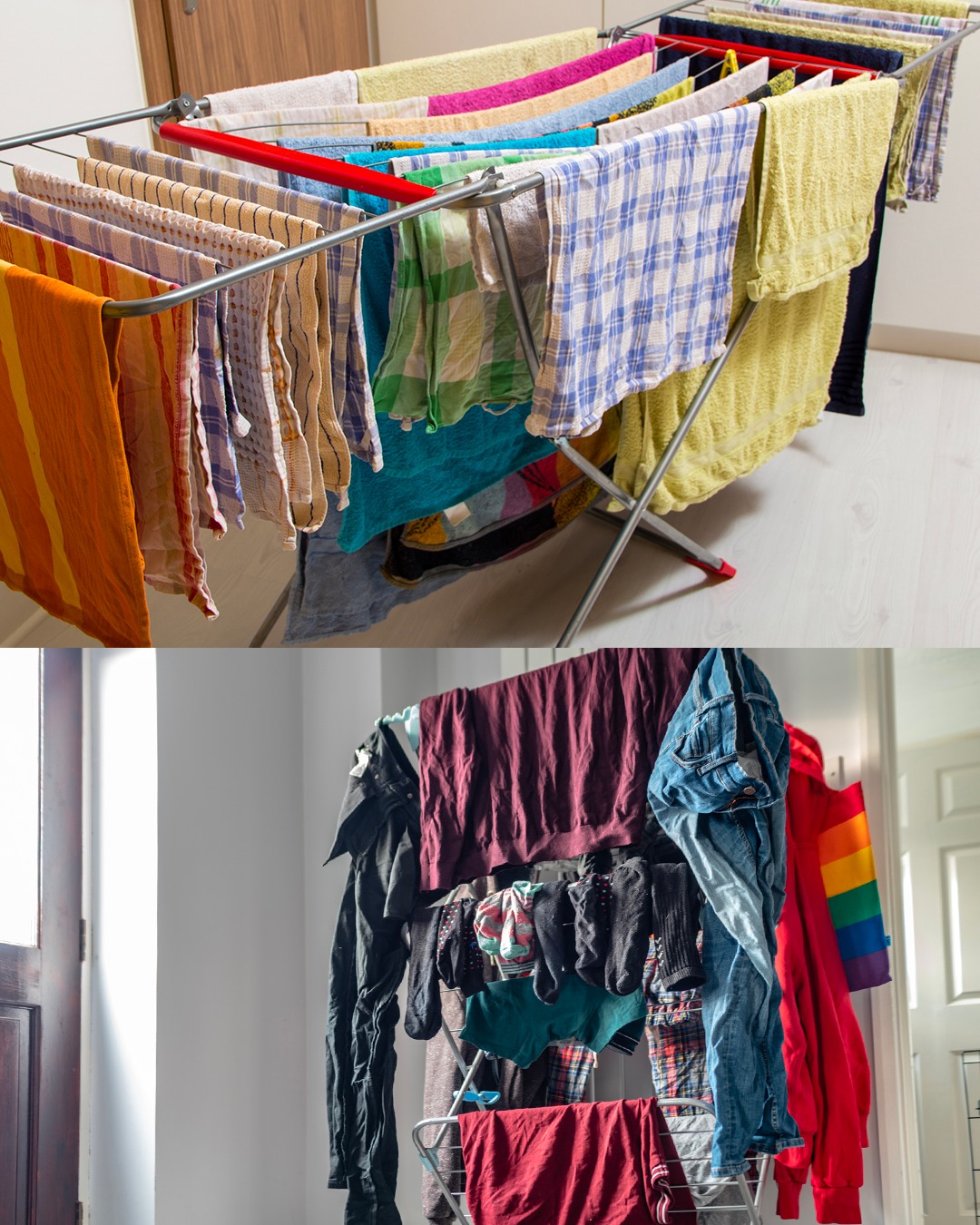 Quand le chauffage est en marche, placez l’étendoir à proximité (en vérifiant qu’aucun vêtement ne touche le radiateur). La chaleur ambiante accélère notablement le processus, surtout si vous aérez régulièrement. Si vous avez un poêle ou une cheminée, utilisez-les : c’est la solution parfaite pour sécher rapidement pendant les jours humides.