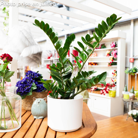 Vous rêvez d’une touche de verdure sans vous transformer en jardinière professionnelle ? Le zamioculcas, souvent surnommé “ZZ”, coche toutes les cases. Originaire d’une région ensoleillée d’Afrique, il a su s’adapter à nos intérieurs en conservant une robustesse exemplaire. Il reste compact, ne demande pas d’attention particulière et apprécie la lumière douce — un vrai caméléon végétal. On le place volontiers dans une pièce lumineuse, mais jamais en plein soleil direct, un peu comme on choisirait un coin cosy dans un salon.
