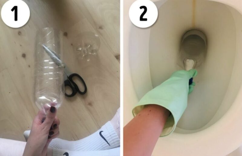 Face à des toilettes bouchées et sans ventouse sous la main, une bouteille de 2 litres peut vous sauver la mise. Coupez son fond et utilisez-la comme alternative en effectuant des mouvements de va-et-vient vigoureux.