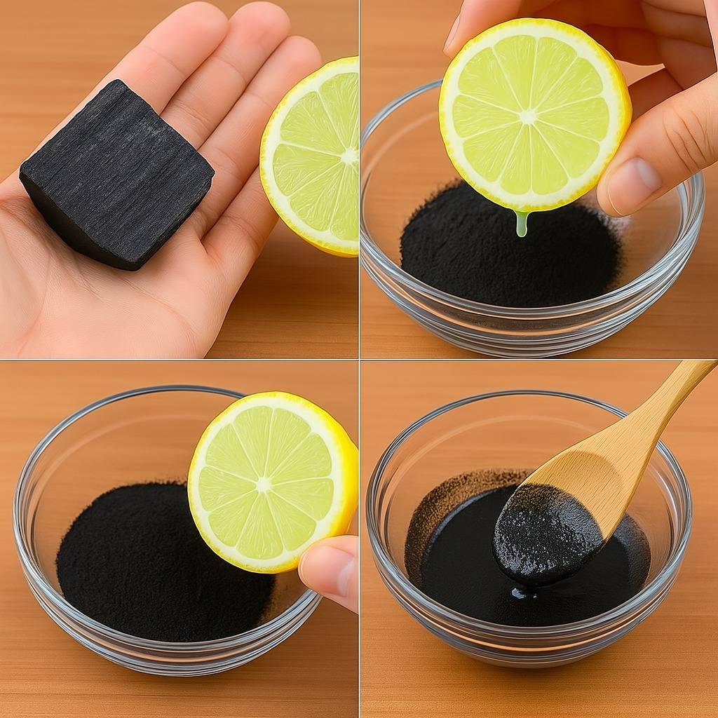 Une fois par semaine, préparez une pâte avec une pincée de charbon, une goutte de jus de citron et un peu d’eau. Frottez délicatement vos dents, rincez abondamment, et terminez par un brossage classique avec un dentifrice fluoré. La règle essentielle : ne pas en faire trop.