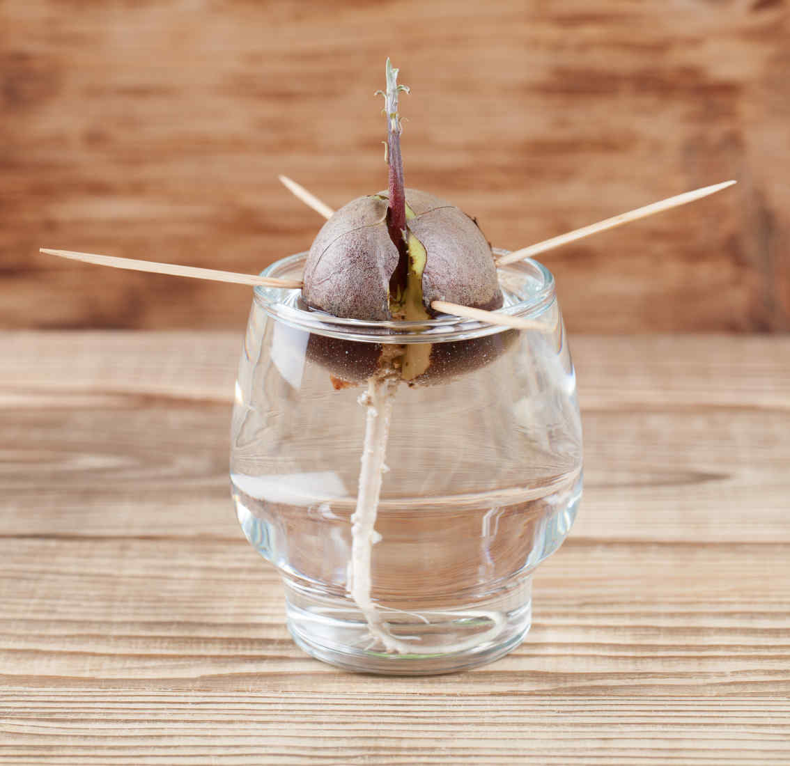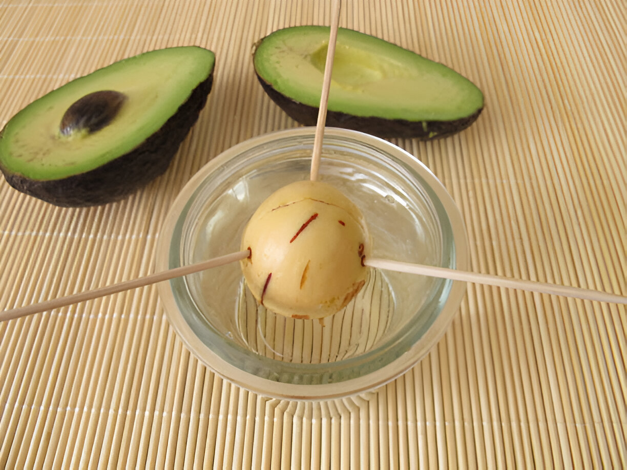 Après avoir savouré votre avocat, récupérez le noyau avec délicatesse. Lavez-le à l’eau tiède pour enlever les restes de pulpe. Identifiez ses deux extrémités : le haut, un peu pointu, et le bas, plus arrondi, qui devra baigner dans l’eau.