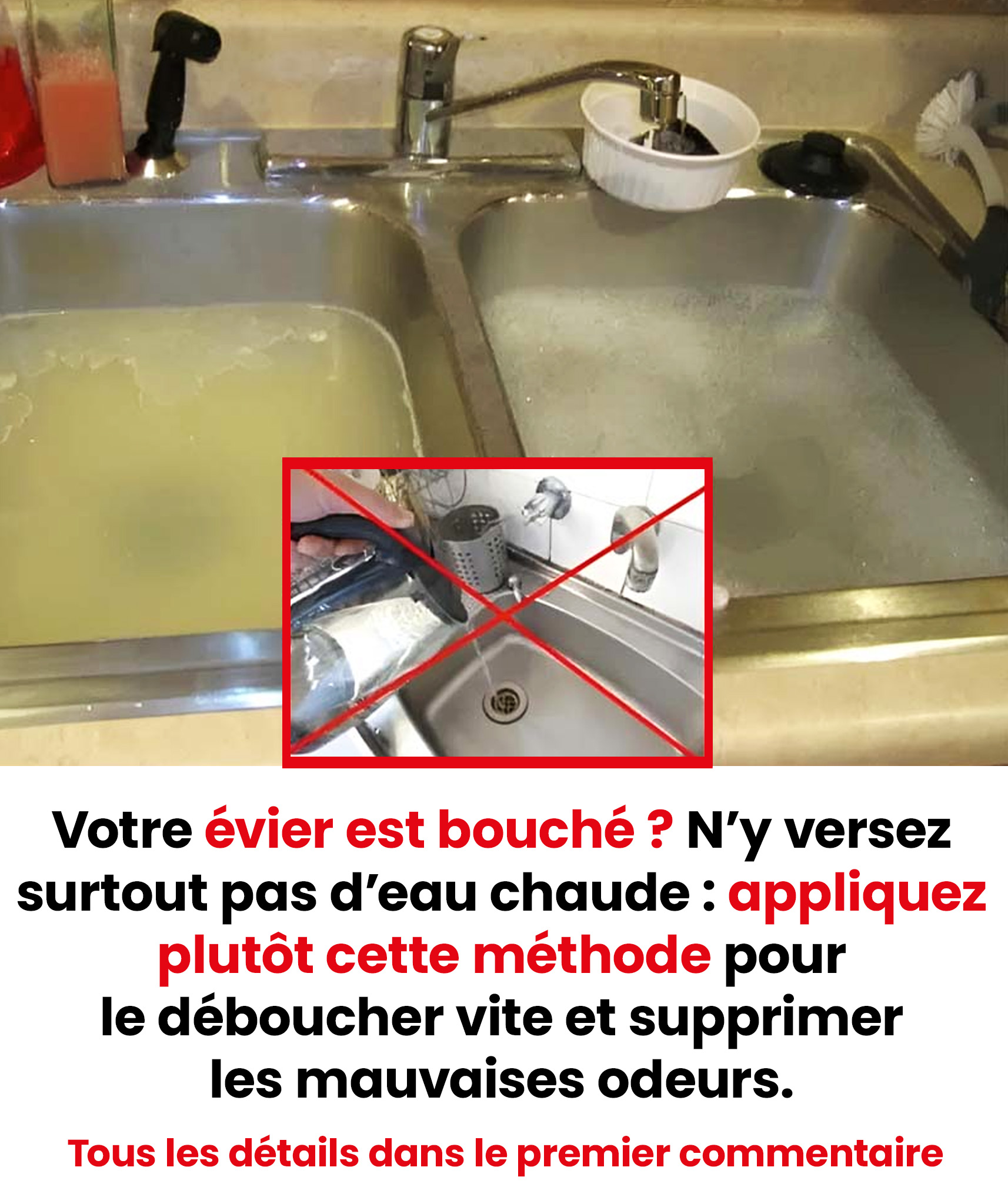 Pensez à boucher rapidement l’évier (avec un bouchon ou un torchon mouillé) pour contenir la mousse. Laissez agir une à deux heures, puis terminez par un rinçage à l’eau très chaude. C’est aussi facile que de préparer un gâteau !