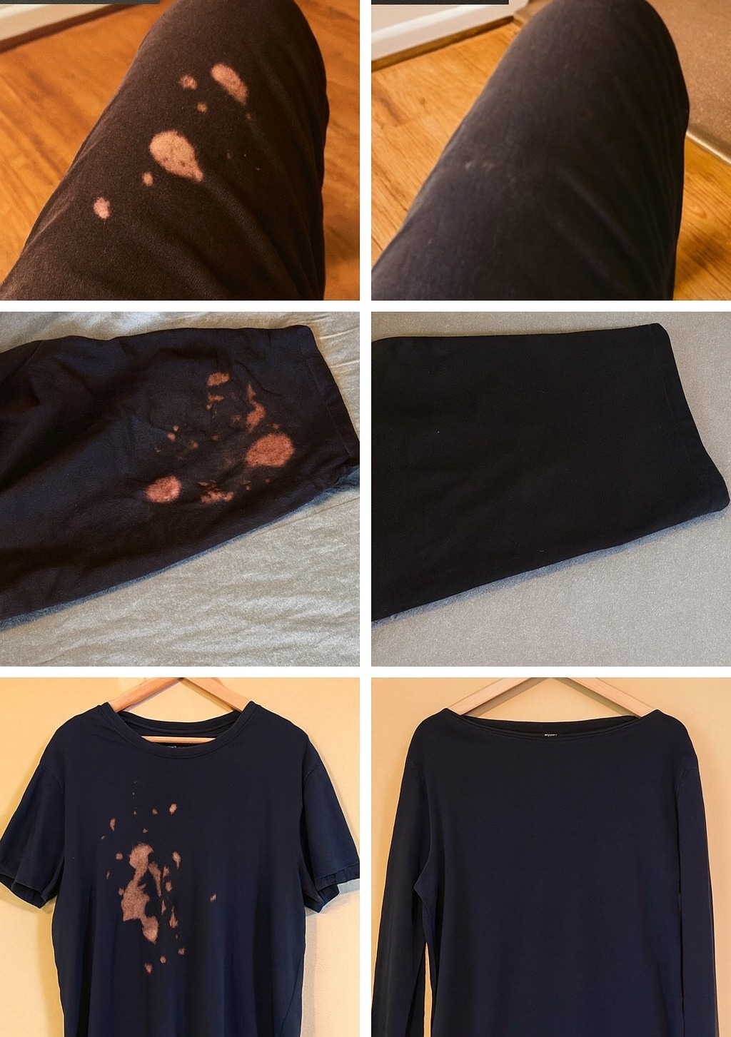 Cette méthode fonctionne optimalement sur des taches récentes. Elle stoppe l’action corrosive de la Javel et réduit l’étendue des dommages visuels. Attention : cela ne permet pas de retrouver la couleur originelle, mais empêche la situation de s’aggraver.