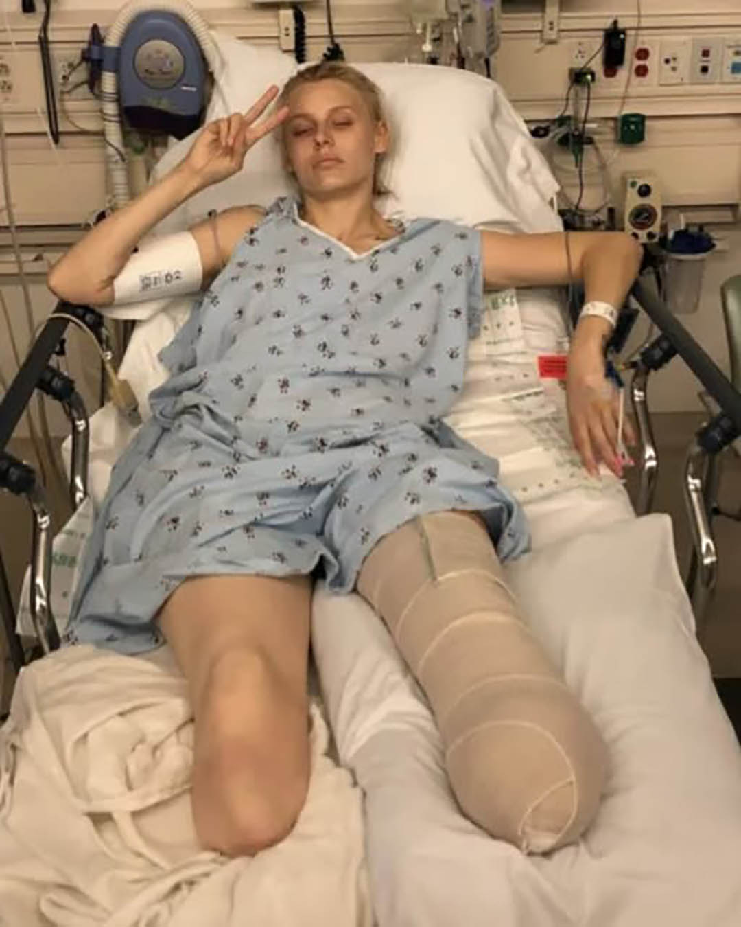 Placée dans un coma artificiel durant plusieurs jours, Lauren lutte pour rester en vie. À son réveil, la nouvelle est cruelle : l’infection a tellement avancé que l’amputation de sa jambe droite s’impose pour la sauver.